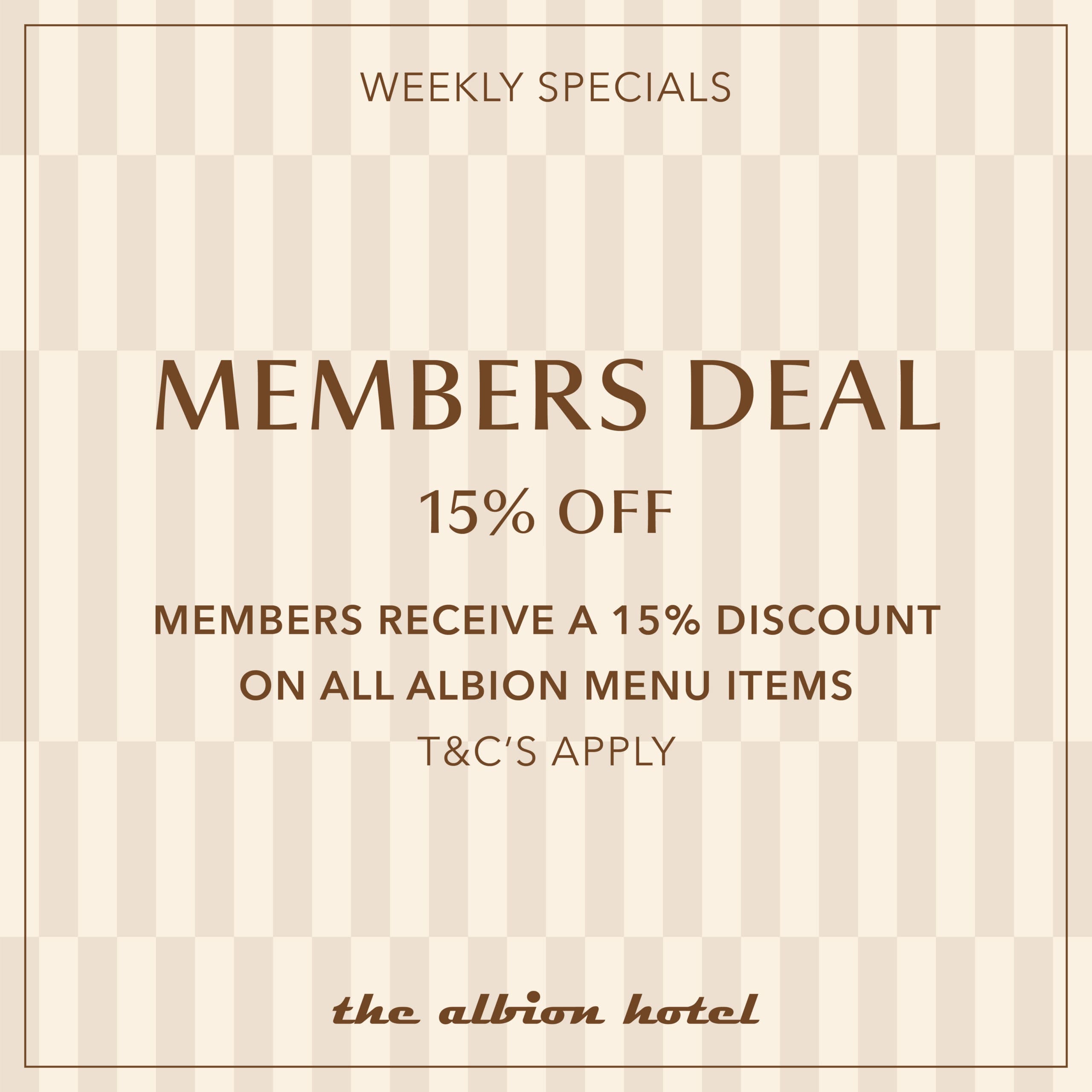 Enjoy our trackside specials every week. Whether it is our trackside $25 parmi & pint deal or $1 off all tap beers for Albion Hotel members- pop in and we will sort you out.
